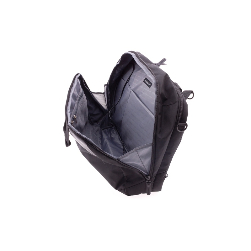 Vogart Boston. Kézben, valamint felcsatolható vállszíjával vállon hordható, de könnyedén laptophátizsákká is alakítható. A hátulján ugyanis elrejthető hátpántokkal bír. A táska egyébként két fő- és két mellékrekesszel rendelkezik. Egyik főrészében 15”-os laptopját tárolhatja, a másikban pedig 10"-os iPad tárolására van lehetőség. A laptoptáska elején két cipzáras mellékrekesz található (az egyikben található egy extra cipzáras minizseb is). A cipzáras mellékrekeszek toll és mobiltelefon, valamint kisebb dolgok tárolására alkalmasak. Beépített USB porttal rendelkezik, így kényelmesen töltheti a telefonját (belülről csatlakoztasson egy külső akkumulátort az USB porthoz, kívülről pedig a telefont). A táska bőröndök húzószerkezetére ráhúzható. Sportos elegancia és praktikum kiváló minőséggel megfűszerezve.