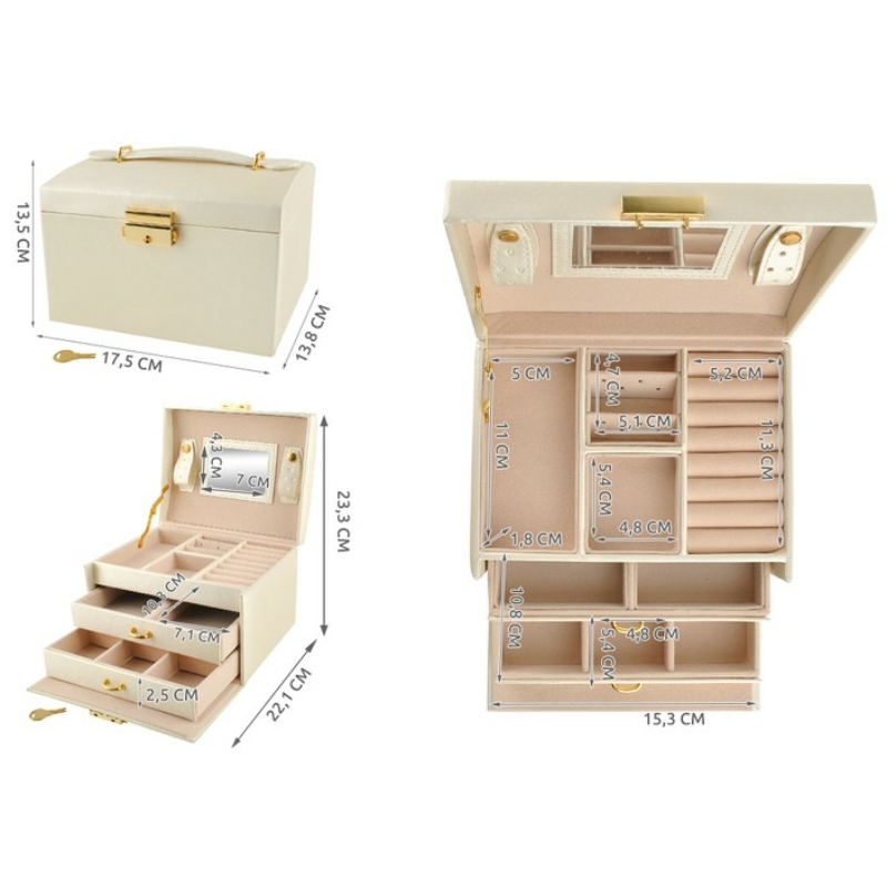 A láda lehetővé teszi, hogy ékszereidről stílusosan gondoskodj, megvédd őket a sérülésektől és szépen mutasd meg őket. Használja a kifejezetten erre a célra tervezett terméket, és élvezze értéktárgyait tökéletesen rendszerezve és biztonságban, egy helyen.