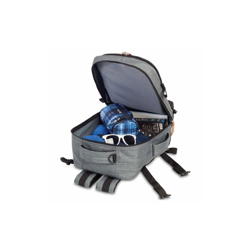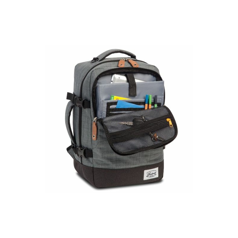 Egy sokoldalú, praktikus hátizsák és ideális kézipoggyász a Bestway márkától, amely igényes és modern kialakítású. Kézben, és szivacsos, állítható vállpántjainak, valamint szintén szivacsos hátrészének köszönhetően háton kényelmesen hordható, a bőröndkulira ráhúzható. A hagyományos kézifogó fül mellett oldalsó kézifogóval is rendelkezik, így segítve a táska emelését, kezelését. Egy fő-, valamint egy elülső és egy hátulsó mellékrekesszel bír. A kabinhátizsák főrészét egy ruhaleszorító pánt gazdagítja, elülső mellékrekeszében pedig párnázott tablet tartót, nyitott zsebeket, két különböző méretű cipzáros hálós rekeszt, valamint írószertartót találunk. A hátulsó cipzáros mellékrekesz további pakolási lehetőséget biztosít: kiváló tárhely lehet pénztárcának, iratoknak.