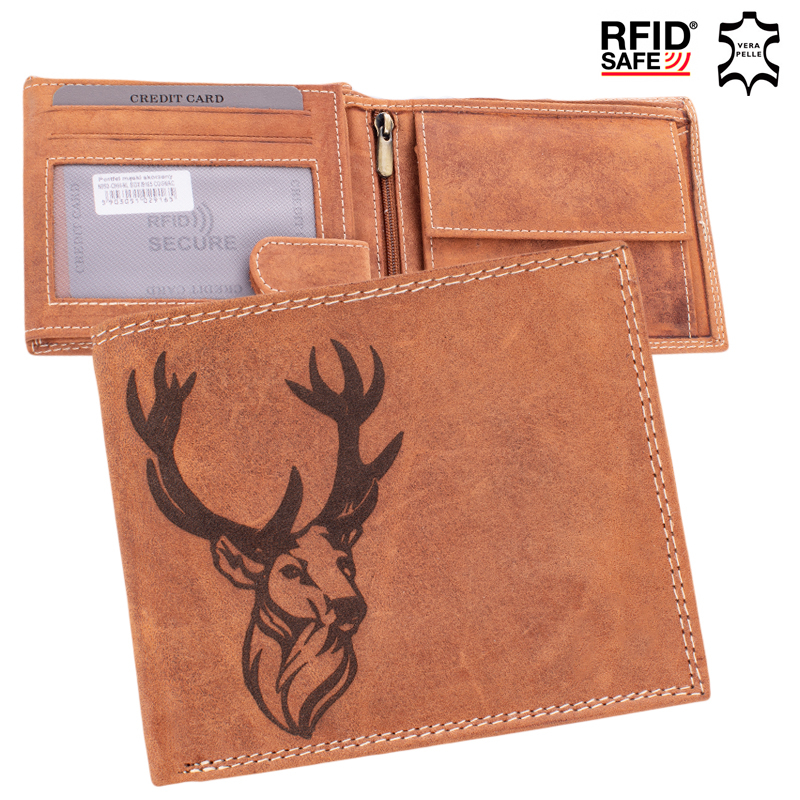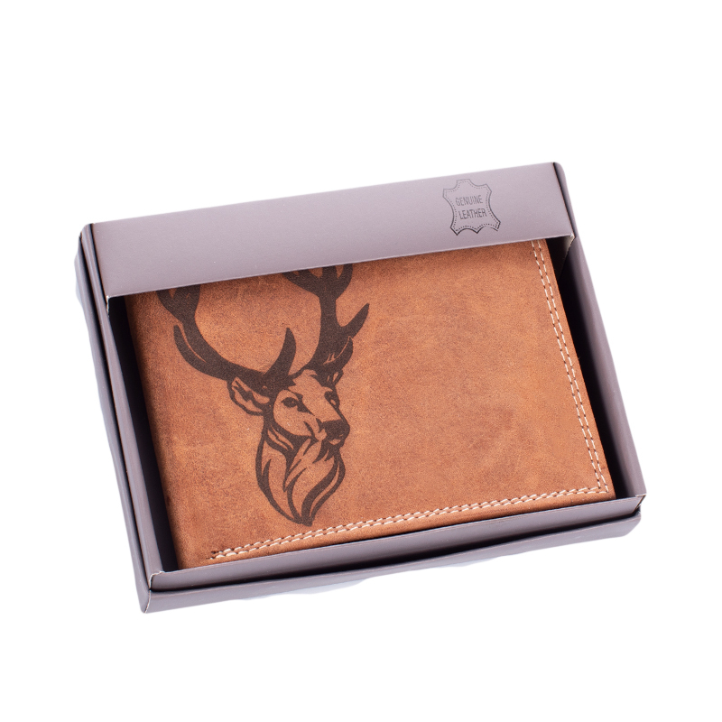 Bivalybőr vadász pénztárca díszdobozban szarvas mintával RFID rendszerrel