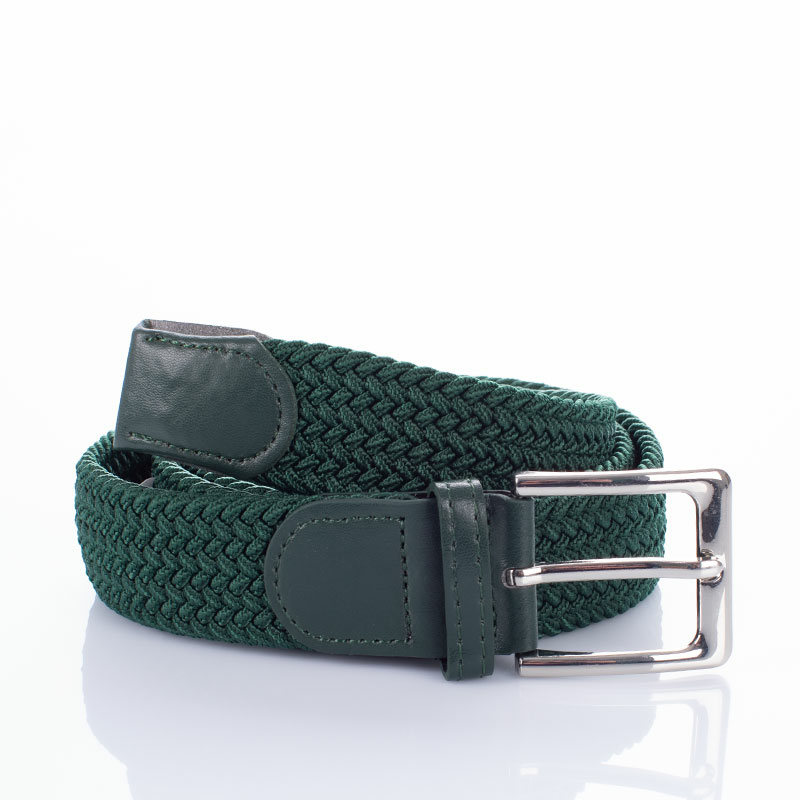 Bőr-szövet sötétzöld színű rugalmas öv