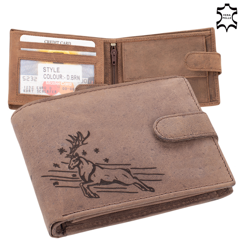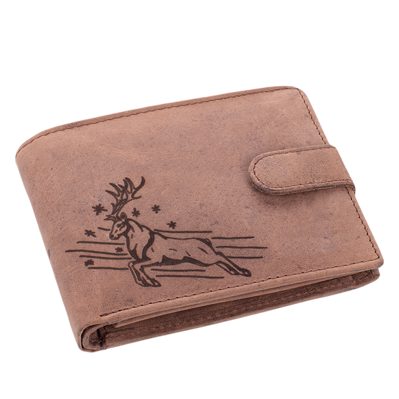 Bőr pénztárca barna színben csodaszarvas mintával díszdobozban RFID védelemmel 5702-csodaszarvas-1