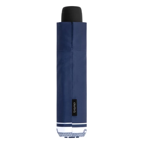Derby kézi nyitású női esernyő. Könnyű, olcsó esernyő, amely kényelmesen elfér táskájában. Különleges tengerész, kötél mintája miatt nagyon népszerű. A gyártó 2 év garanciát biztosít a Derby esernyőkre.