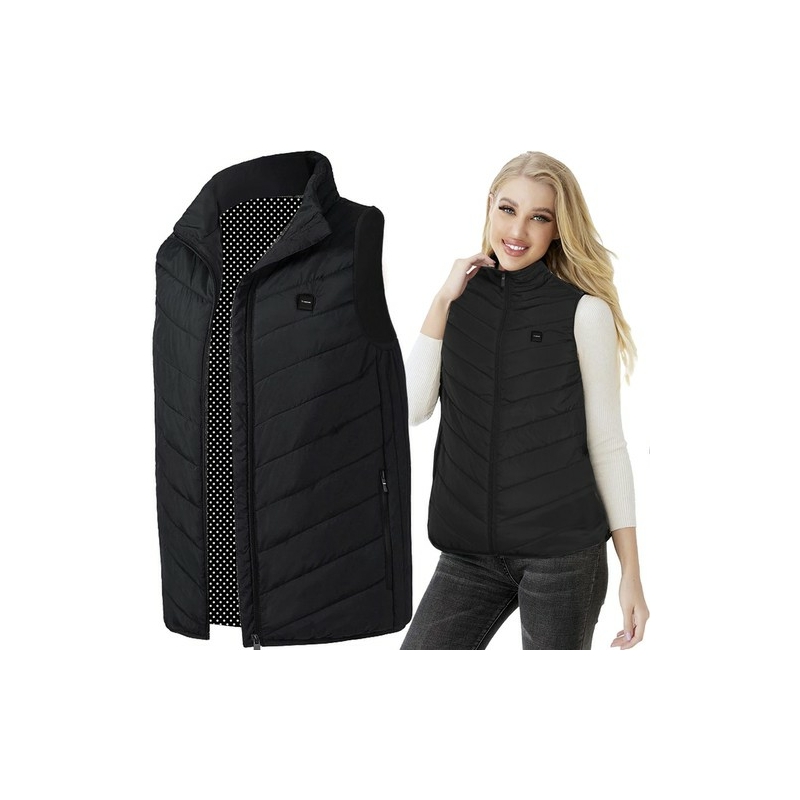 MEGJELENÉS - a mellényt sportos stílusban tervezték. Divatos steppelt kialakítással rendelkezik, így mindenki számára vonzó lesz. Tökéletesen alkalmazkodik a testhez, és mindenekelőtt megakadályozza a hőveszteséget. Cipzárral záródik. A belső zsebben USB tápkábel található. Csatlakoztathatja például egy power bankhoz. Amikor a hőmérséklet csökken, a beépített rendszer lehetővé teszi, hogy azonnal felmelegítse a testét.