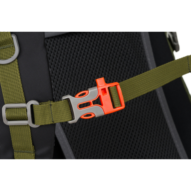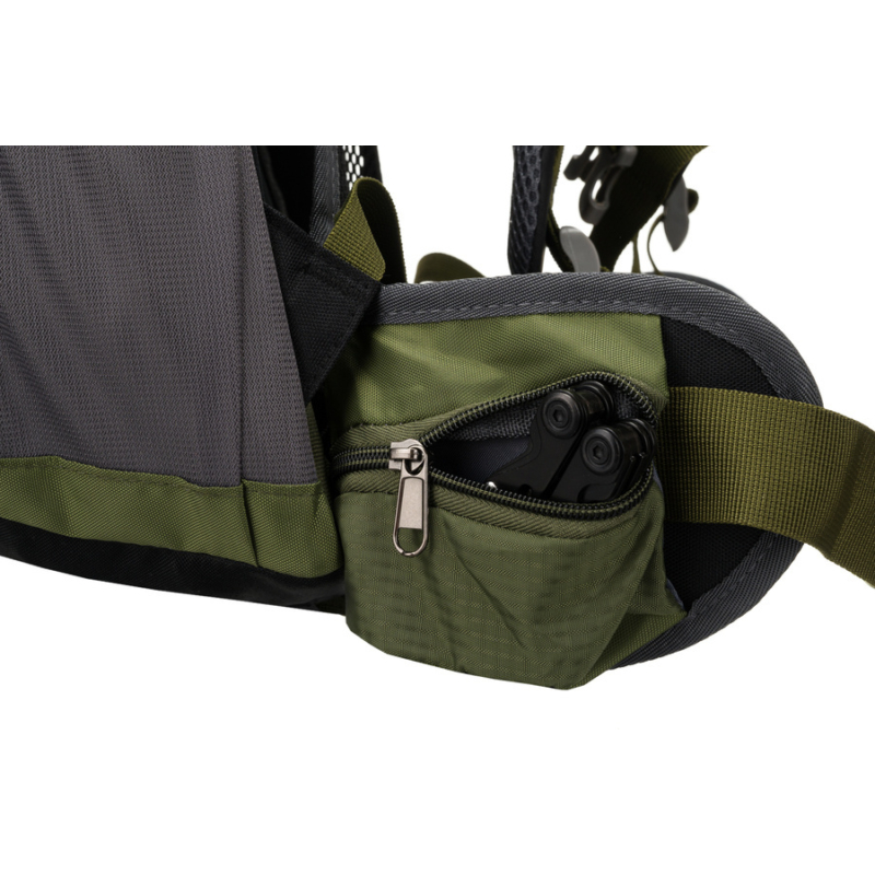 A hátizsák állítható csípő- és mellhevederekkel van felszerelve, amelyek garantálják az alakhoz való tökéletes illeszkedést, tehermentesítve a hátat hosszú túrák során is.