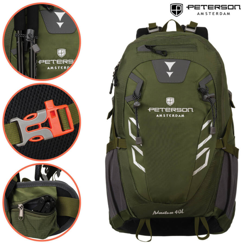 Peterson túrahátizsák 40 literes űrtartalommal. Tágas, kényelmes viselet, állítható pántokkal, sok zsebbel és hátsó szellőzőrendszerrel. Tökéletes férfiak és nők számára, kényelmet és funkcionalitást biztosít nehéz terepen.