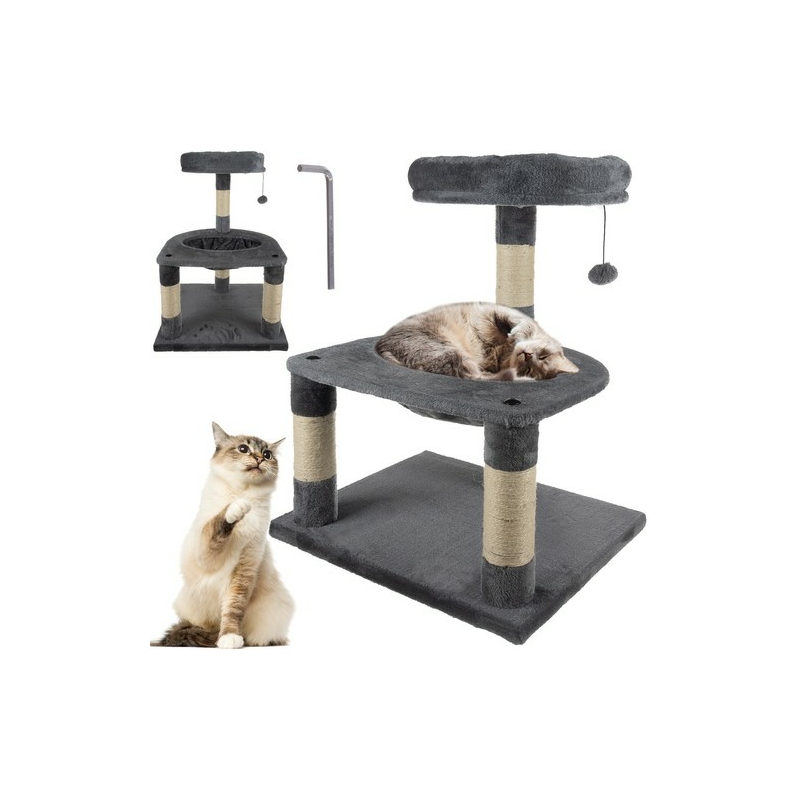- 3 szintes - a macskakaparó padlóját kivételesen puha szőrzet borítja, ami kényelmes pihenést garantál dorombolással a háttérben. A fa fő előnye a nyugágy. A cica szabadon pihenhet. 3 szint a macska kíváncsiságának megfigyelésére. Unalom esetén gumiszalagra szerelt puha labdára/játékra is vadászhatsz - elkaphatod és megtámadhatod.