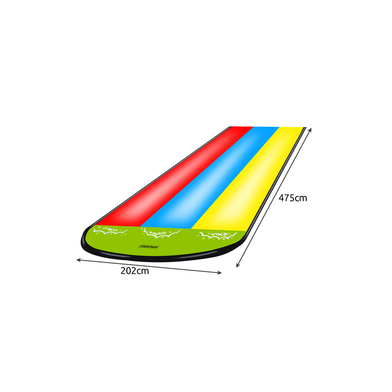 Egyszerű összeszerelés - gyors összeszerelés 3 egyszerű lépésben: terítse ki a pázsitra, rögzítse rögzítő dübelekkel és csatlakoztassa a kerti tömlőt, játékra kész 5 perc alatt !