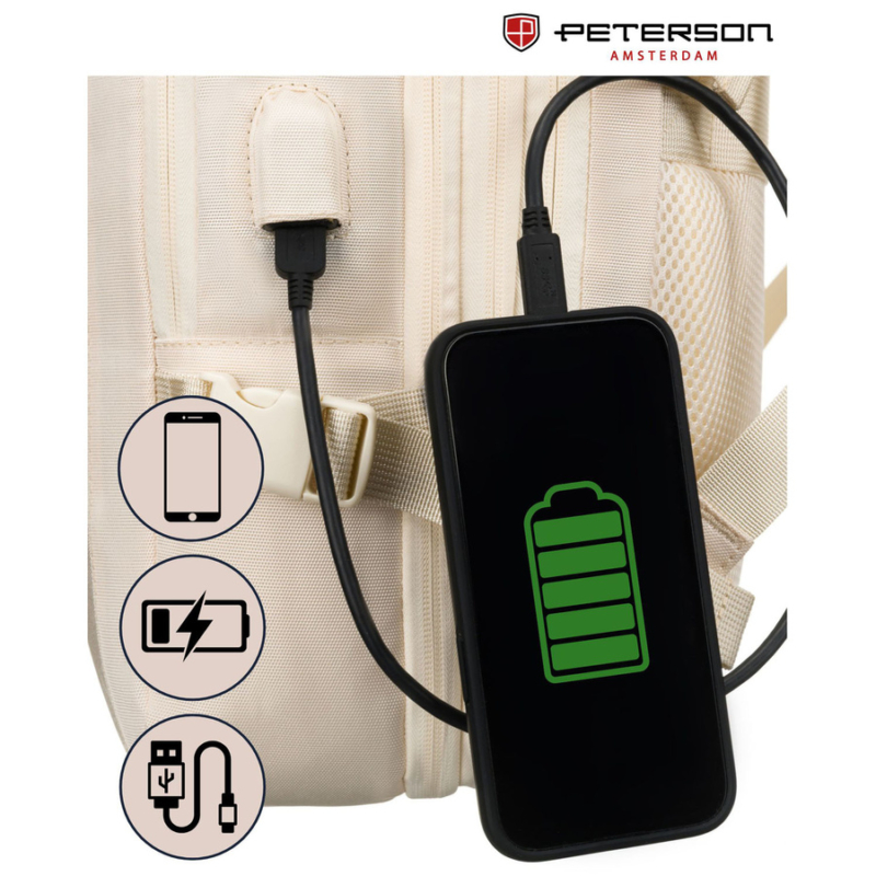 Laptoptartós hátizsák, tökéletes kézipoggyászhoz, kompressziós pántokkal felszerelve - Peterson