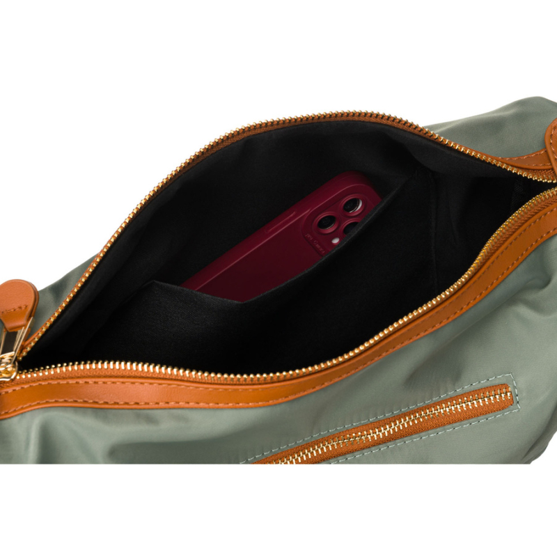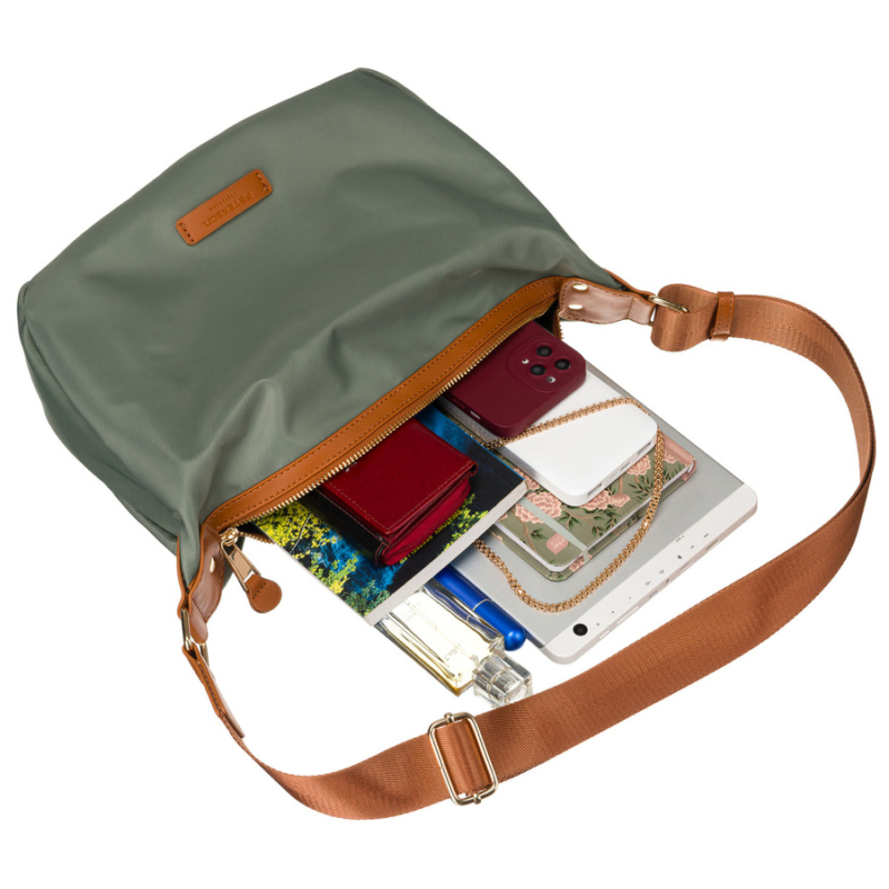 - A tágas fő rekeszben elfér egy tablet, könyv, telefon, pénztárca, kozmetikumok és egyebek. Belül egy további cipzáras zsebet is találsz, amely tökéletes kulcsoknak vagy dokumentumoknak, valamint egy nyitott zsebet, ahová gyorsan becsúsztathatod a telefonodat vagy a jegyedet.