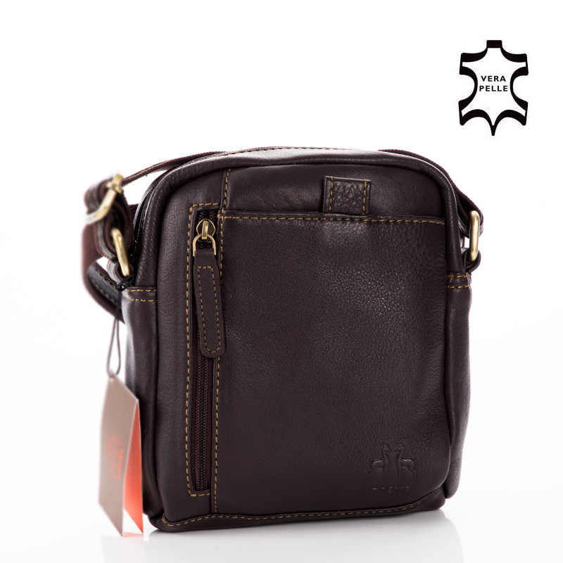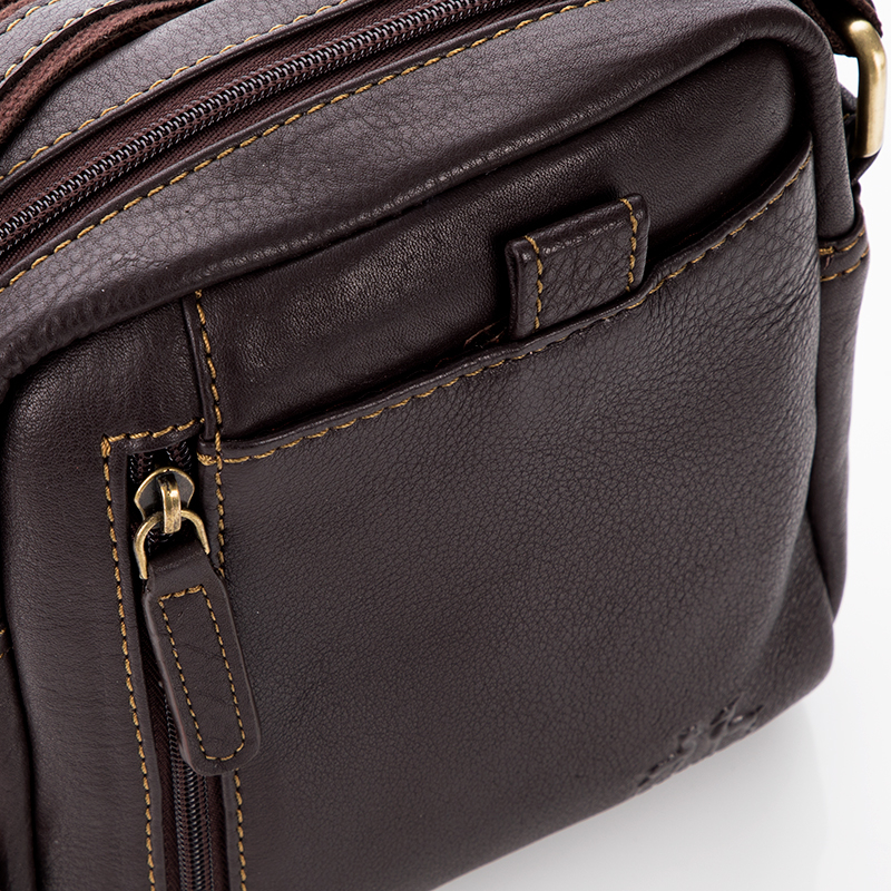 A spanyol Rosme bőr válltáska első osztályú anyaga és kimunkálása méltán megállja helyét a bőrdíszműves iparágban. A válltáska elején két (egy tépőzáras és egy cipzáras) hátulján egy cipzáras extrazseb kapott helyet, amelyek kisebb dolgok tárolására alkalmasak. A főrekeszben telefontartó került elhelyezésre, valamint egy belső cipzáras zsebet is találunk. Vállpántja tetszőlegesen állítható. Szép, igényes, finom tapintású, valódi, minőségi bőr.