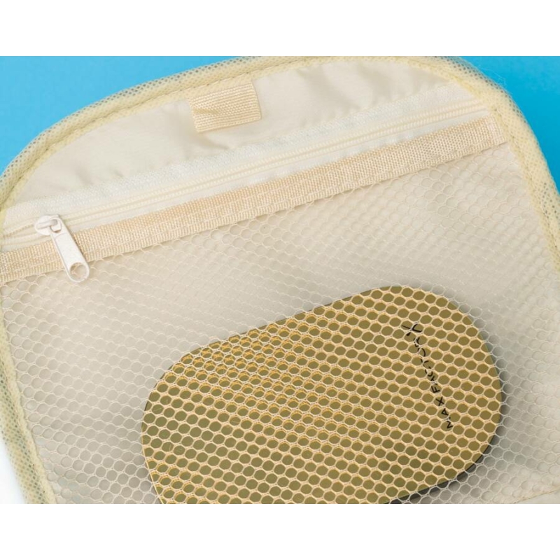 - A rekesz belseje speciális krémszínű béléssel van bélelve , amely védi a kozmetikai táska belsejét.