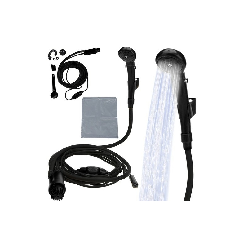 SOKOLDALÚ ALKALMAZÁS - a turistazuhany nem csak a test mosására szolgál. A kempingezők minden bizonnyal értékelni fogják a funkcionalitását. Csak csatlakoztassa az autó csatlakozójához, és kényelmesen zuhanyozhat – sok kemping kínál olyan zuhanyzókat, ahol olyan alacsony a vízfolyás, hogy a szokásos fürdés több percet vesz igénybe, ami azt jelenti, hogy óriási a sor! Zuhanyunkkal beállíthatja a patak teljesítményét. A termék lehetővé teszi az edények mosását, az autó öblítését, a felfújható játékok mosását és sok más tevékenységet. A készlet tartalmaz egy zsinóros táskát, amely víztartályként vagy burkolatként használható.