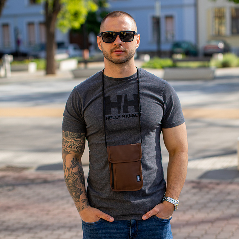 Travel Check Irattartó nyakban hordható barna színben RFID védelemmel