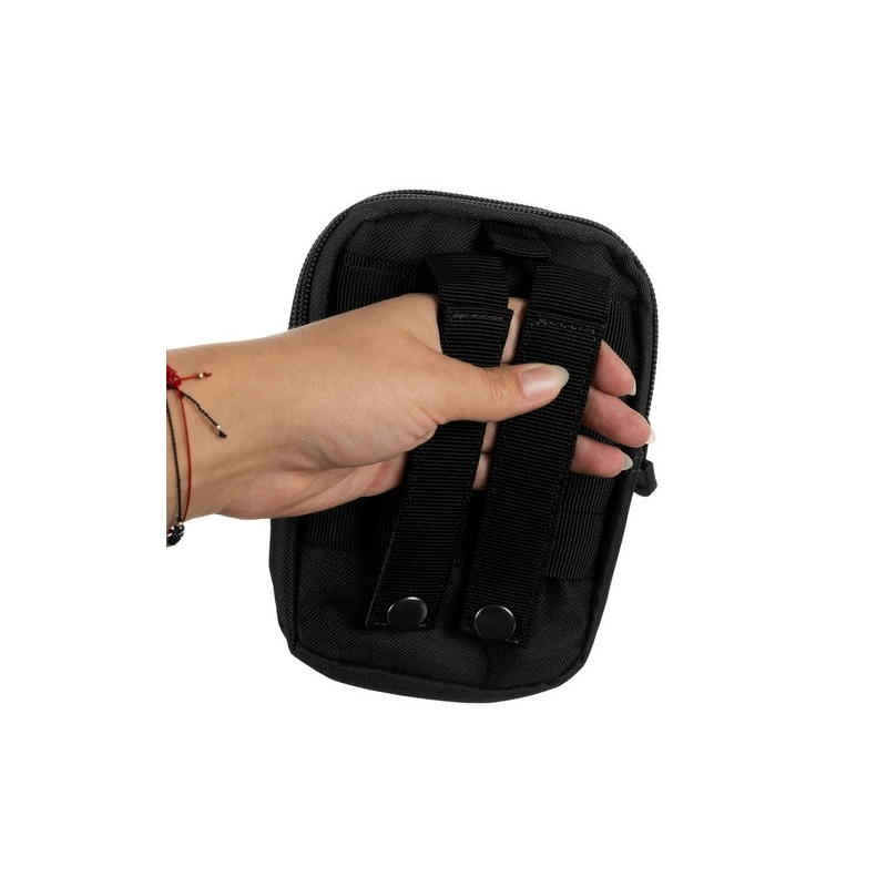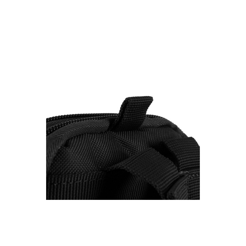 MOLLE RENDSZER FLEXIBLE FIT - a táskát a MOLLE (Modular Lightweight Load-carrying Equipment) rendszer figyelembevételével tervezték, amely lehetővé teszi a táska rugalmas rögzítését a taktikai felszerelés különböző elemeihez, például hátizsákokhoz, övekhez vagy mellényekhez. A táska hátulján két merevített heveder található, amelyeket erős fémkapcsokkal rögzítenek , amelyek ráadásul megvédik a táskát a használat közbeni elmozdulástól. A táska hátulján két sor vízszintes pánt található, mindegyik csíkon három szekcióval, ami lehetővé teszi a táska szélességi övhöz vagy más felszereléshez való igazítását. Ez az innovatív megoldás növeli a táska funkcionalitását , így ideális a dinamikus helyzetekben.