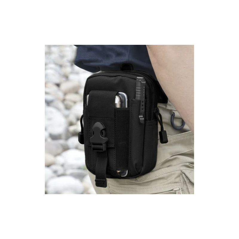 FUNKCIONÁLIS - a táska két fő rekesszel van felszerelve, amelyek kényelmes csúszkákkal ellátott cipzárakkal záródnak , ami lehetővé teszi a gyors hozzáférést a tartalmához. Mindkét rekesz további belső zsebeket tartalmaz, amelyek ideálisak kisebb tárgyak, például kulcsok vagy dokumentumok tárolására. Elülső vese van egy speciális zseb a telefon, rögzítve egy cipzárral állítható pánt csat készült tartós PP anyagból (polipropilén), amely garantálja a stabilitást és a készülék biztonságát . E zseb mellett van hely a tollnak vagy egy vékony zseblámpának , ami rendkívül praktikus taktikai körülmények között. A táska hátulján két merevített heveder található, amelyek erős fémbetétes patentokkal vannak rögzítve, és használat közbeni elcsúszás ellen is biztosítják a táskát.