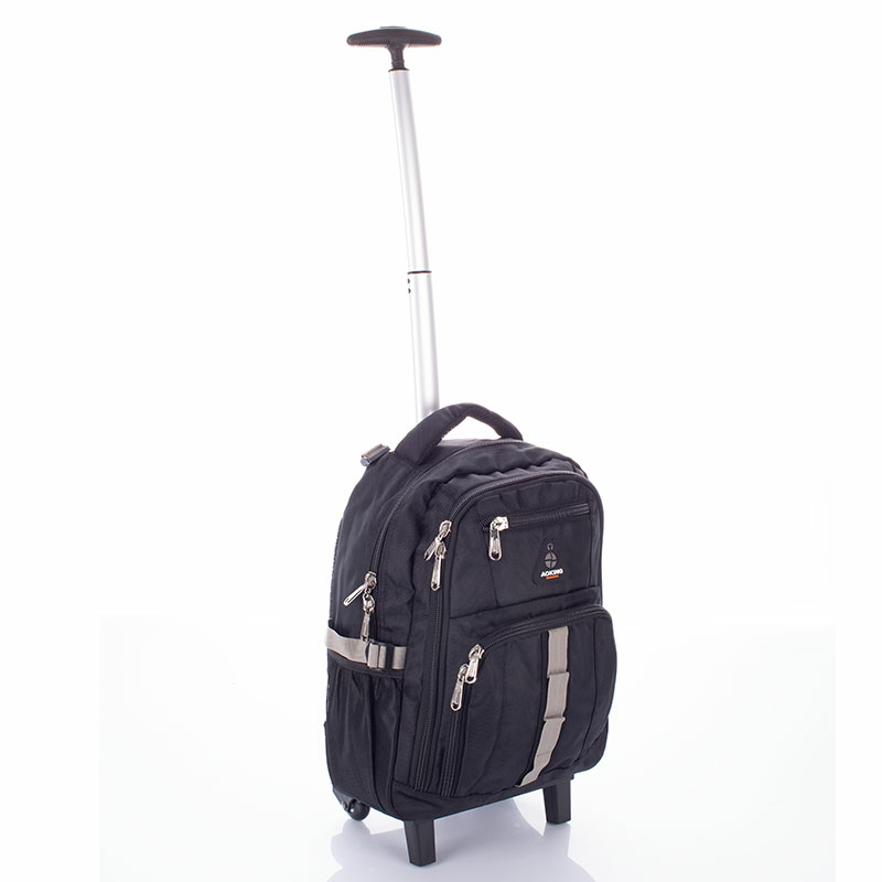 Gurulós,  laptoptartós Aoking hátizsák. Praktikus zsebek, tárolórekeszek. Vállpántja állítható hosszúságú. Alkalmas mindenféle szabadidős tevékenységekhez, utazásokhoz, de iskolába járáshoz is kitűnő hátizsák.