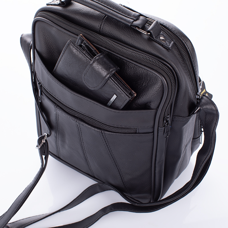Évekkel ezelőtt már vettem egy ugyanilyen táskát, ami megtetszett egyik családtagomnak, most pótolnom kellett... Kiváló az anyaga, kifogástalan a varrása, praktikusak a zsebei (elöl 3 zseb + 2 főrekesz + hátul 2 zseb)... Elöl az egyik zsebben kártyatárolók is vannak...