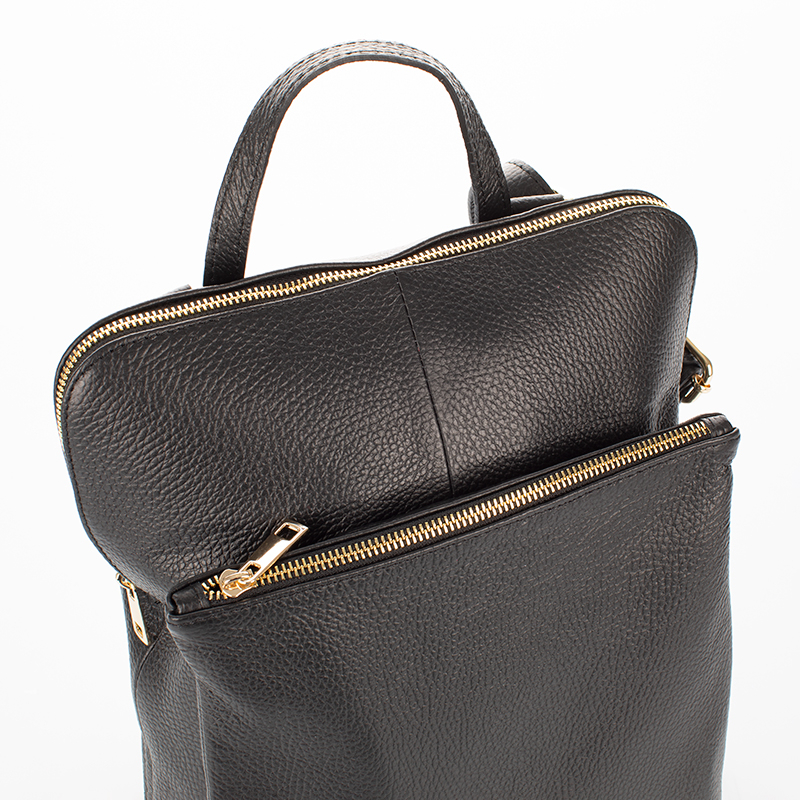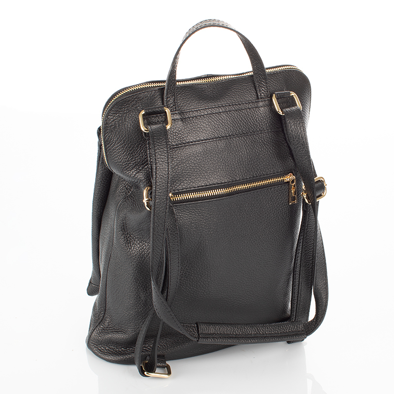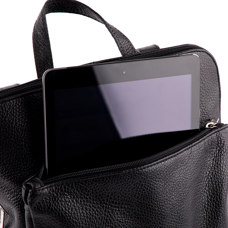 Valódi bőr fekete színű hátizsák, amely minőségből nem szenved hiányt, hiszen magas minőségű olasz bőrből készíttettük. Ha egy strapabíró és mindennapi használatú hátitáskára lenne szükséged, akkor remek választás ez a női táska! A bőr hátizsákban elférnek az A/4-es méretű füzetek és iratok, így iskolába, egyetemre vagy munkába is megfelelő ez a táska. A női háti elején található egy cipzáras rekesz, melyben iPad vagy tablet is elfér, így külön fiókban tárolhatod elektronikus eszközöd. A női olasz táska belsejében pedig, van egy cipzáras és két nyitott kisebb zseb is, amiben kisebb értékeidet tárolhatod elszeparáltan. A bőr háti hátulján van még egy nagyjából a táska felével megegyező méretű cipzáras rész is, ahová érdemes a lakáskulcsunkat vagy telefonunkat rakni. Hiszen ez a zseb biztonságot nyújt az idegen kezek elől, nem mellesleg pedig gyorsan előtudjuk venni a dolgainkat ebből a zsebből, ha éppen erre van szükségünk. Ez a bőr táska nagy belső térrel rendelkezik, így pakolás terén teljesen átlátható. Remek választás lehet külföldre utazáskoris, hiszen mindent magunkkal tudunk vinni benne, ha arra lenne szükségünk. A hátiszák 3 funkciós, így könnyedén készíthetünk belőle oldaltáskát is, hiszen vállpántja átalakítható, emiatt oldaltáskaként is hordhatjuk. Minősége pedig páratlan ennek a női bőr hátitáskának sokáig hűséges tásunk lehet, az magas minőségű olasz bőrnek köszönhetően. Összesen 15 színben vásárolható meg ez az valódi olasz bőrből készült női hátizsák, így mindenki megtalálhatja a hozzá legjobban passzolót.