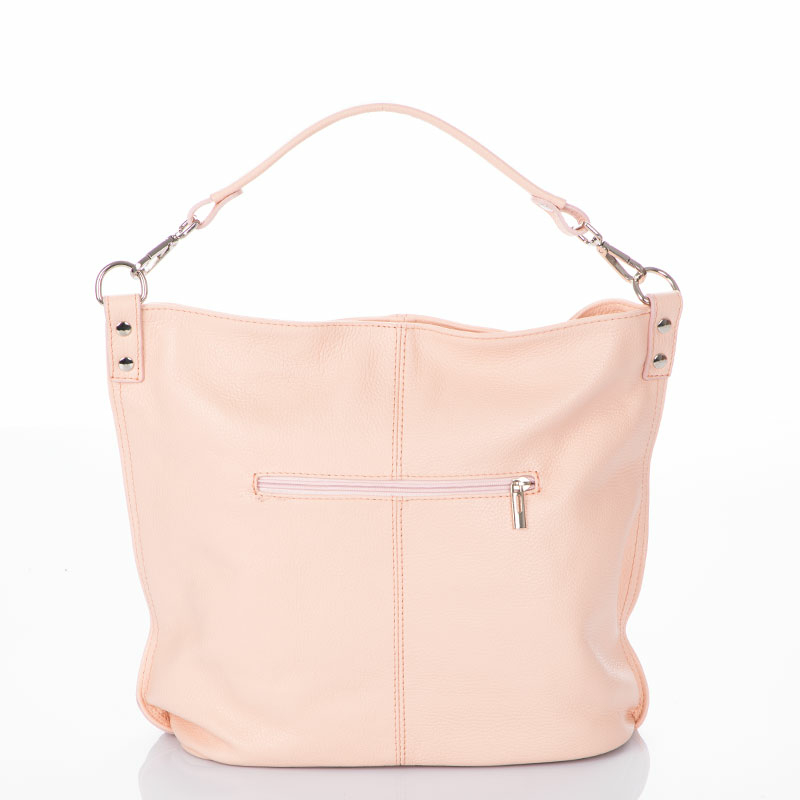 Valódi bőrből készült, fekete színű, pakolós női táska, ami mindenhez illik. Belseje osztott, bélése világos, bézs színű. Középen egy cipzáras rekesszel van elválasztva a pakolótér. Oldalsó zsebek is találhatóak még benne, egy cipzáras és egy mobiltartó. Külső cipzáras zsebekkel is felszerelt, méghozzá kettővel is. Kétféleképpen viselhetjük, rövid pánttal, amelynek hossza 48 cm, de ezt le is csatolhatjuk róla, ha kényelmesebbnek gondoljuk a hosszú pántot, ennek hosszúsága szabályozható, maximum 120 cm-ig. A táska teteje cipzáras, biztonságos.
