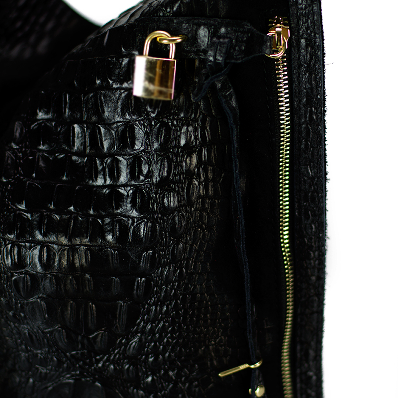 Kifogástalan minőségű vastag bőr, a kroki minta is olyan rajta, mintha igazi lenne. Valóban nagy pakolós, de közben elegáns darab.