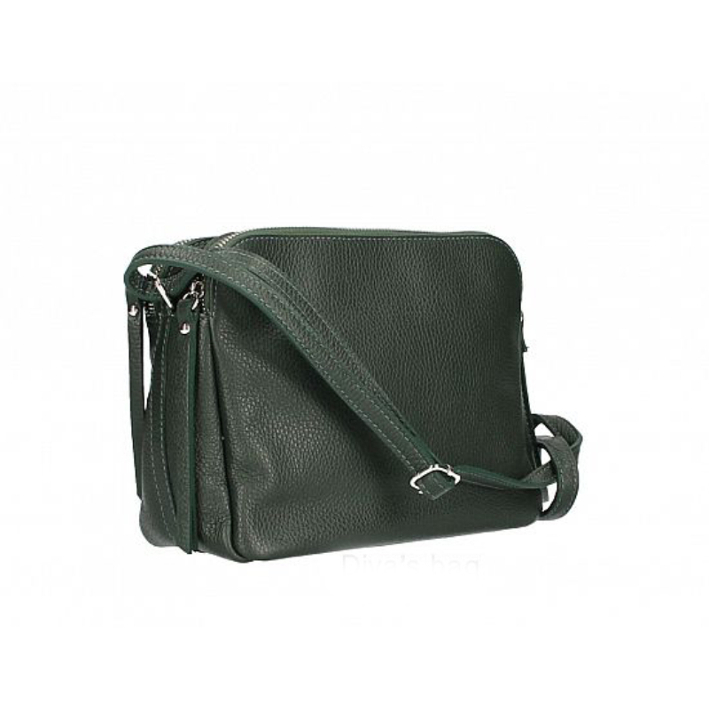Valódi bőrből készült női divattáska, oldaltáska. Könnyed és kényelmes viselet. Elfér benne a nagyméretű pénztárca is. Két különálló cipzáras rekesze van, középen pedig egy mágnespatentos. A két cippes zsebben egy mobiltartó és egy cipzáras oldalzseb található. Vállpántjának hosszúsága állítható, maximális mérete 140 cm. Tíz lenyűgöző szín közül rendelhető.