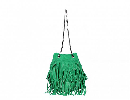 Valódi bőr Rojtos női oldaltáska Zöld színben